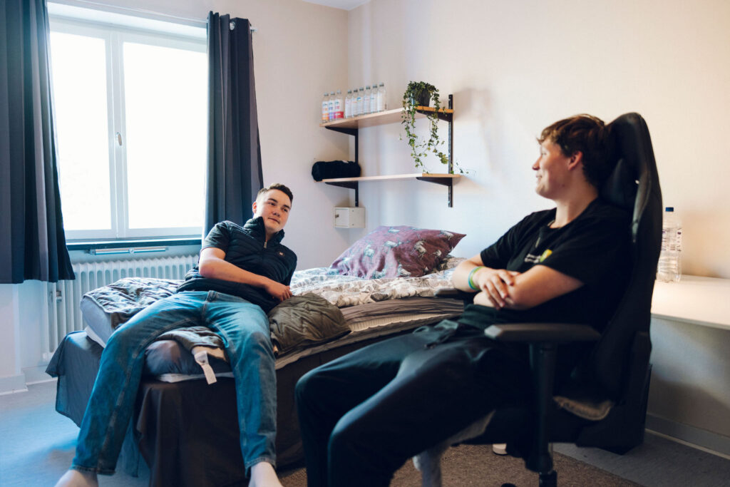 Utanför personalrummet går Tim Andersson och Milton Persson Sundius förbi. De går första året på inriktning skogsbruk och bor på internatet för att slippa den långa pendlingen. De tycker att man snabbare lär känna eleverna från sin egen och men också andra klasser om man bor på internatet.