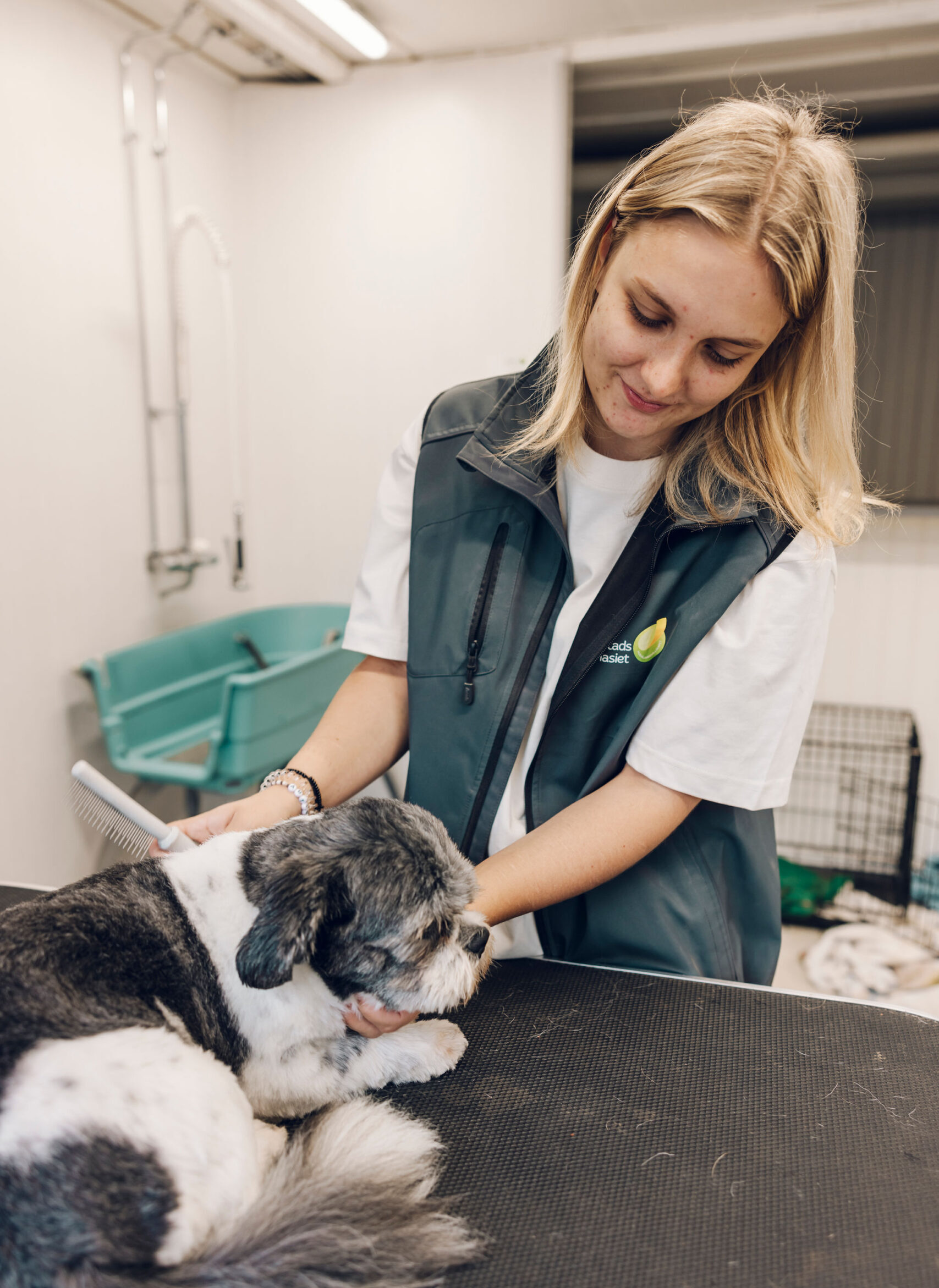 Trots att Ebba tog studenten 2023 är hon kvar på skolan. Eller snarare tillbaka, men nu arbetar hon extra på skolans hunddagis.