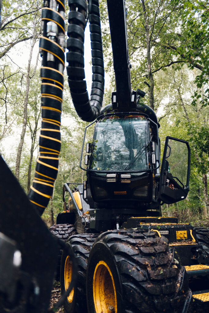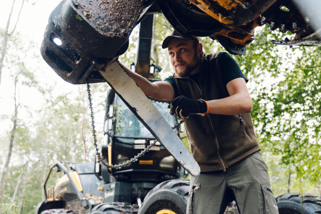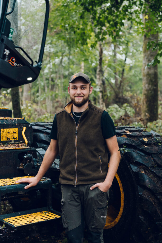 Det är blött och regnigt bland träden utanför Sösdala. Men högt uppe i Victor Kokks skördare Scorpio King är det torrt och bekvämt. Och han får vara i skogen, vilket är det han älskar.